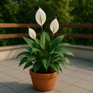 Friedenslilien vertragen Schatten und Temperaturschwankungen. Halte die Erde leicht feucht und wische die Blätter regelmäßig ab, damit die Pflanze atmen kann.