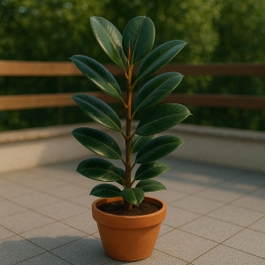 Der Gummibaum besitzt dicke, glänzende Blätter, die Feuchtigkeit speichern. Er wächst im Winter am besten bei mittlerem Licht und kommt auch mit trockener Luft zurecht. Lass die oberste Erdschicht antrocknen, bevor du wieder gießt, und wische die Blätter sauber.